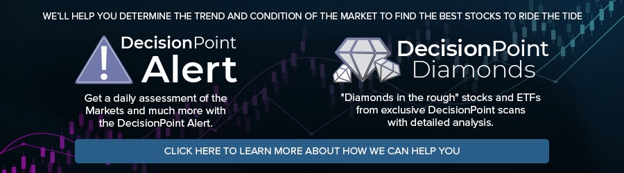 DecisionPoint is not a registered investment advisor. Investment and trading decisions are solely your responsibility. DecisionPoint newsletters, blogs or website materials should NOT be interpreted as a recommendation or solicitation to buy or sell any security or to take any specific action.