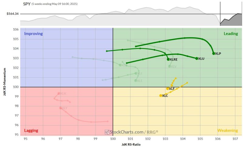 This combination of weekly and daily RRG tails supports these sectors maintaining their top-five status despite some short-term weakness.