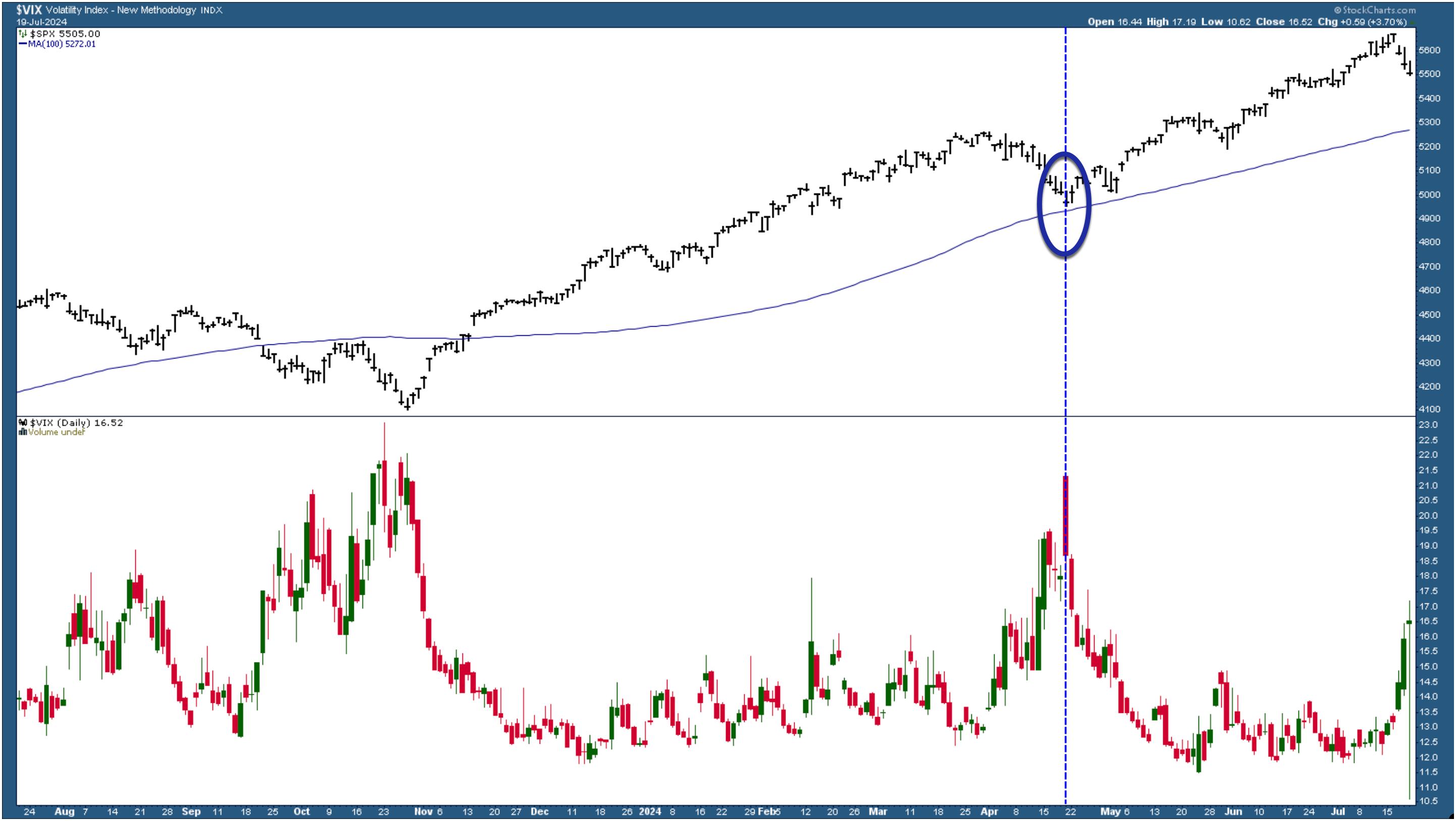 CHART 4. WATCH THE VIX. The VIX is a great fear gauge. The last time it spiked was when the S&P 500 corrected. Will this time be similar, or will it go even higher?Chart source: StockCharts.com. For educational purposes.