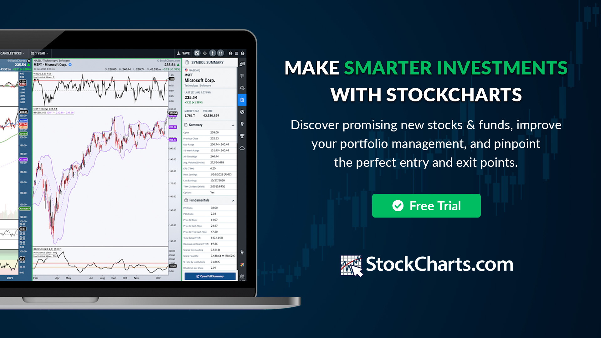 It was an all across-the-board sell-off. Even precious metals and bond prices fell. Very little of the market was in green territory on Friday. Head to the Market Summary page on your StockCharts platform and scroll down the long list, and you’ll see there are a few greens in a sea of red.