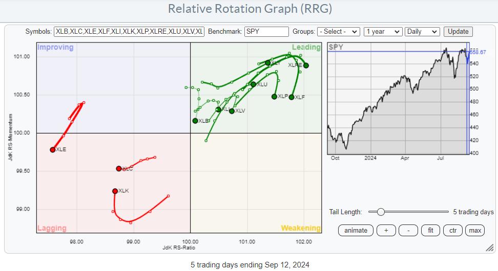 On the weekly RRG, this move has had no material impact so far.