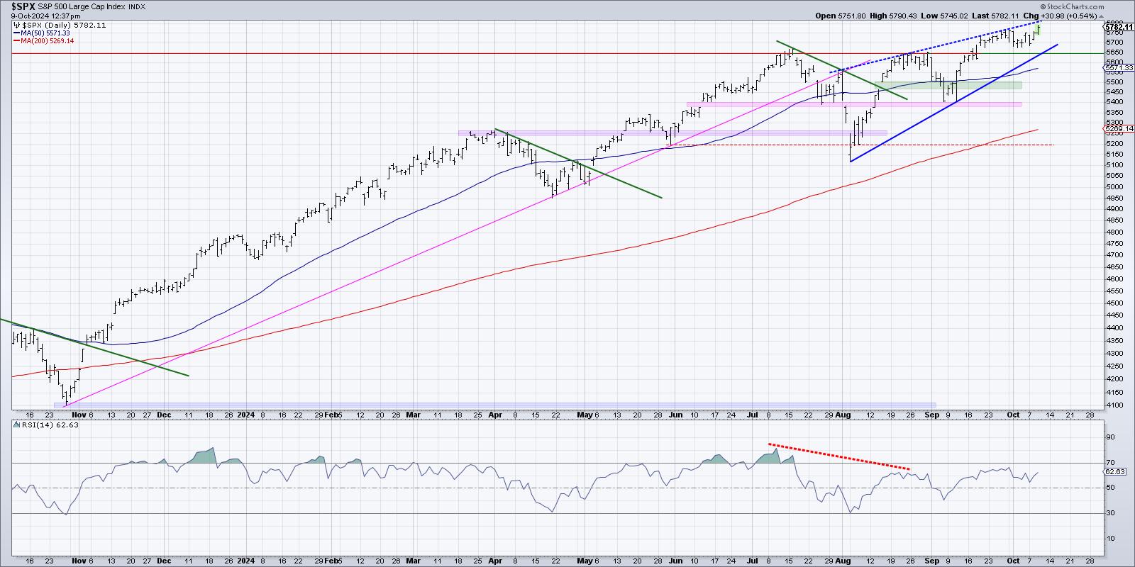 So until and unless we see the S&P 500 break below 5650, then the current bullish trend appears to be alive and well!