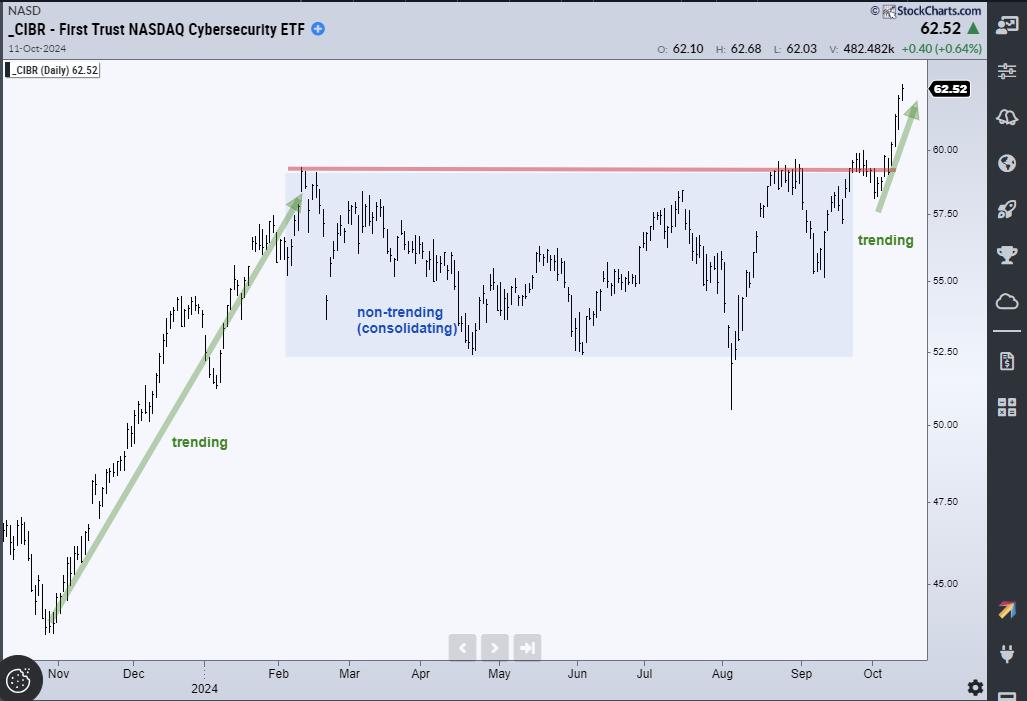 TrendInvestorPro is focused CIBR, tech-related ETFs and tech stocks as they move from corrective non-trending periods to trending periods. We think the market is looking past the elections and toward seasonal patterns, which soon turn bullish. Opportunity awaits! Click here to learn more.